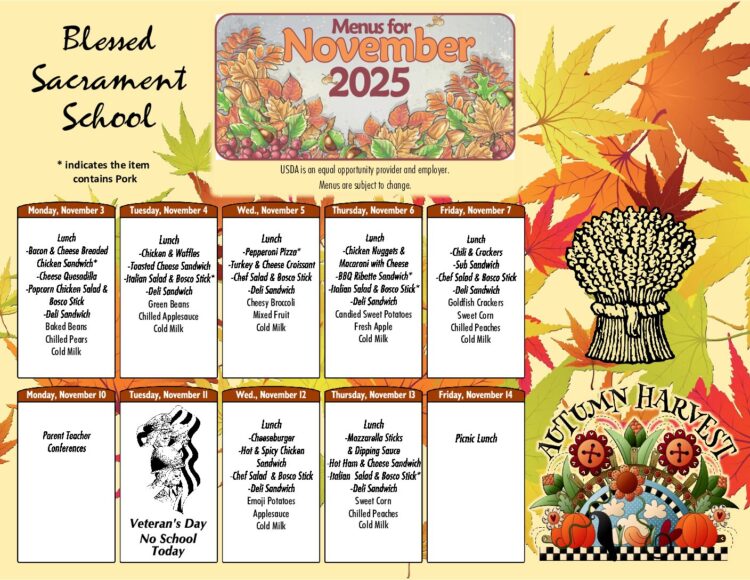 Blessed Sacrament School is a participating sponsor of the National School Lunch Program. Our facility provides school lunches (with milk) that may be available free or at a reduced price.