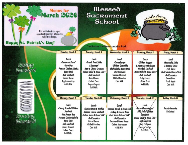 Blessed Sacrament School is a participating sponsor of the National School Lunch Program. Our facility provides school lunches (with milk) that may be available free or at a reduced price.
