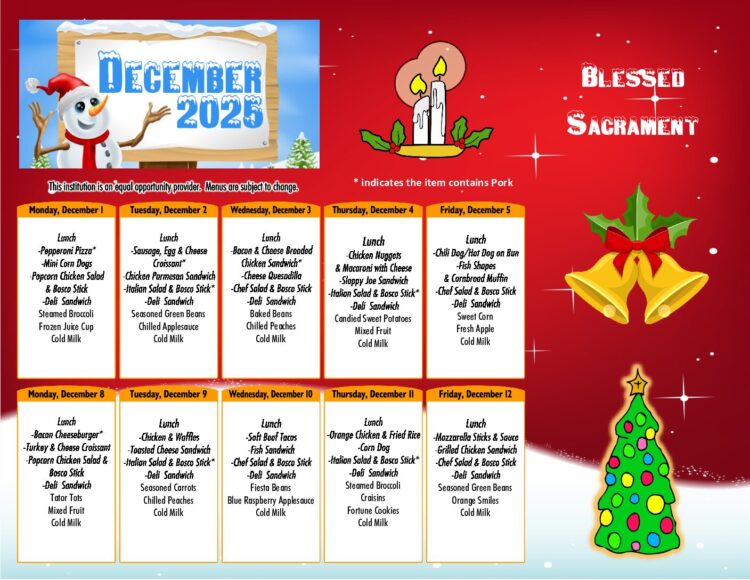 Blessed Sacrament School is a participating sponsor of the National School Lunch Program. Our facility provides school lunches (with milk) that may be available free or at a reduced price.