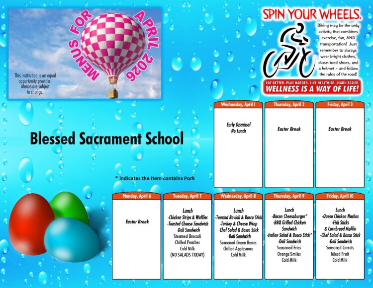 Blessed Sacrament School is a participating sponsor of the National School Lunch Program. Our facility provides school lunches (with milk) that may be available free or at a reduced price.