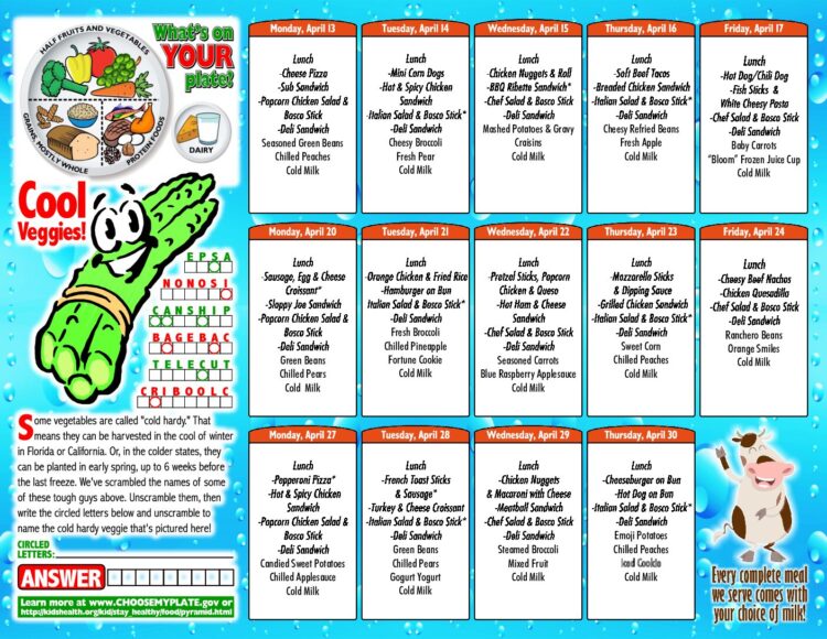 Lunch : Choices available each day: two main entrees, salad or sandwich of the month
